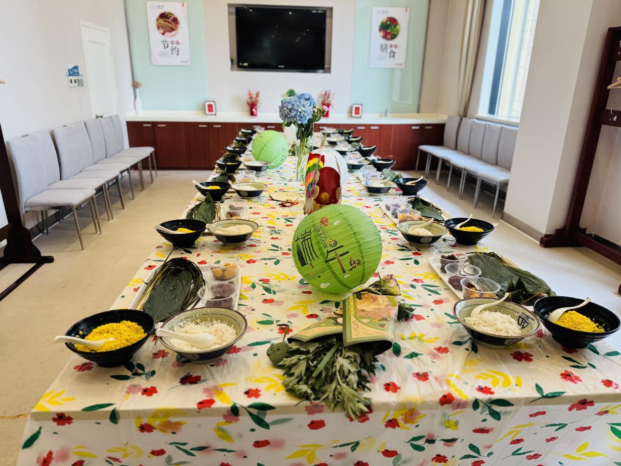 現(xiàn)場(chǎng)準(zhǔn)備了糯米、藜麥、大黃米、粽葉、馬蓮草、蜜棗、豆沙、五花肉、蛋黃等材料。包粽子的過(guò)程中,從挑選粽葉、浸泡糯米,到包裹成型,每一個(gè)步驟都充滿樂(lè)趣。技術(shù)嫻熟的人不用一分鐘就可包好一個(gè)完美的四角粽,而現(xiàn)學(xué)的人則相對(duì)手拙,不斷嘗試、不斷學(xué)習(xí),互教互學(xué),大家都十分享受包粽子的過(guò)程,在笑聲中為職工包粽子,歡度端午,同時(shí)也在包粽子的過(guò)程中感受到大家庭的濃濃暖意。