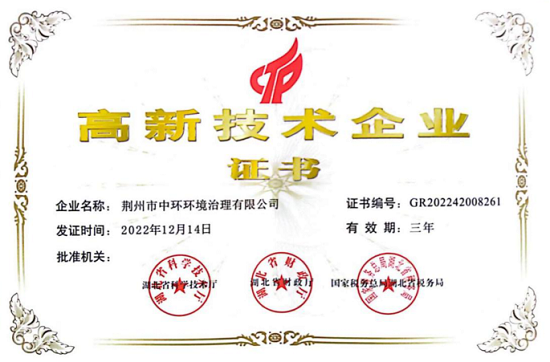 近日,中節(jié)能生態(tài)下屬荊州公司被評為高新技術(shù)企業(yè),湖北省科學技術(shù)廳、湖北省財政廳、國家稅務(wù)局湖北省稅務(wù)局聯(lián)合為其頒發(fā)“高新技術(shù)企業(yè)”認定證書。