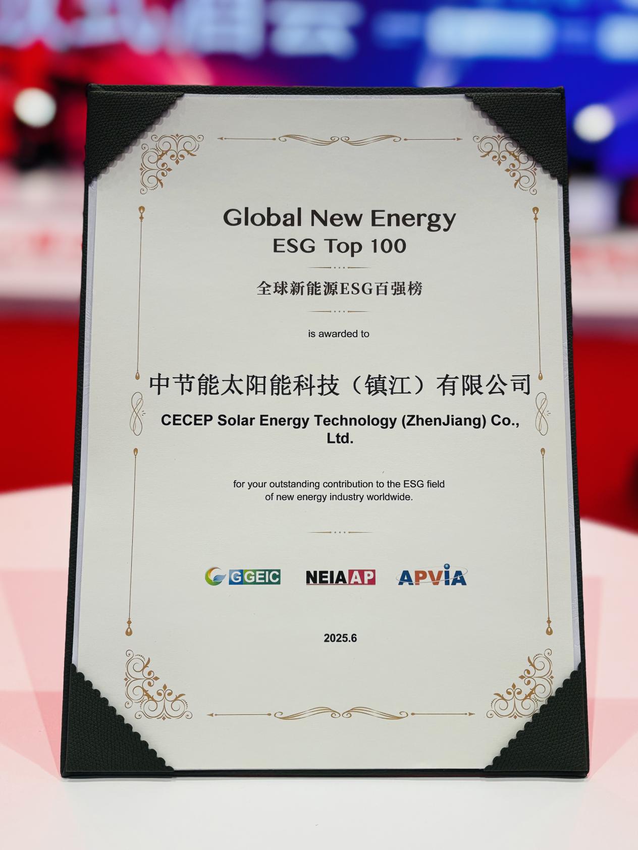 近日,在上海舉行的第十八屆SNEC光伏展期間,太陽能鎮(zhèn)江公司憑借在環(huán)境、社會(huì)及治理領(lǐng)域的扎實(shí)實(shí)踐與積極成效,成功入選“Global New Energy ESG Top 100全球新能源ESG百強(qiáng)榜”,其可持續(xù)發(fā)展努力獲得國際權(quán)威機(jī)構(gòu)高度認(rèn)可。