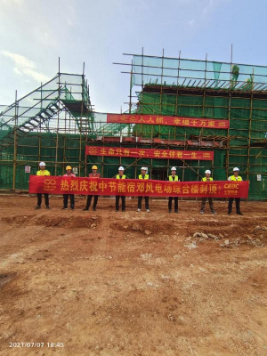 7月7日下午18點56分,風電廣西公司忻城宿鄧低風速試驗風電場項目工程實現(xiàn)了第一個關鍵建設目標,35kV開關站綜合樓主體結構混凝土封頂順利澆筑完成。