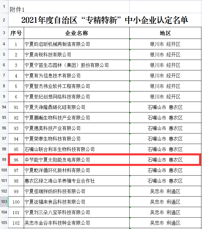 中節(jié)能寧夏太陽(yáng)能發(fā)電有限公司榮獲2021年度寧夏回族自治區(qū)“專精特新”中小企業(yè) |