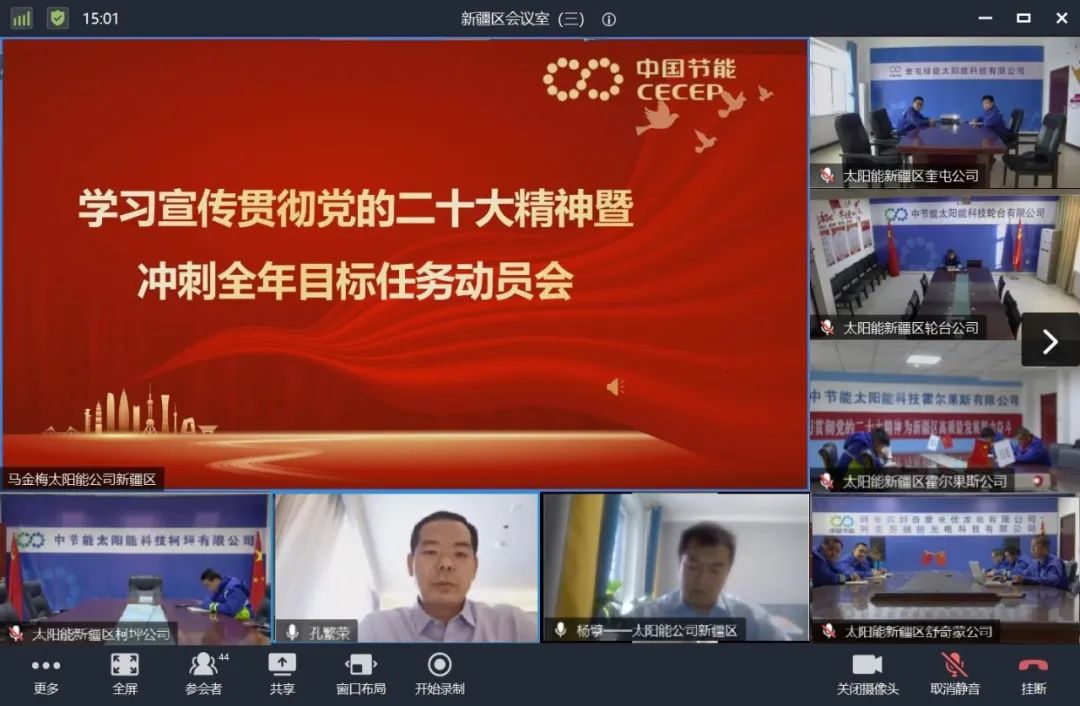 黨的二十大勝利召開以來,太陽能新疆區(qū)黨總支切實把思想和行動統(tǒng)一到黨的二十大決策部署上來,迅速掀起學習宣傳貫徹熱潮,堅持把“為何學、怎么學、怎么做”貫穿到新疆區(qū)工作的各方面、全過程,通過領(lǐng)導干部帶頭學、層層發(fā)動廣泛學、豐富載體創(chuàng)新學、結(jié)合實踐深入學,做到學思用貫通、知信行統(tǒng)一,以實干實績檢驗學習貫徹成效。