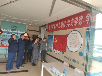 察右后旗錫勒鄉(xiāng)黨支部黨員干部一行參觀了昶源風場黨員活動室,對內(nèi)蒙支部開展黨史學習教育營造的濃厚氛圍和學習方式給予高度評價,并與昶源黨小組聯(lián)合開展黨史學習“一對一”互動交流活動。面向黨旗重溫入黨誓詞后,在場黨員干部共同學習了《中國共產(chǎn)黨簡史》有關(guān)內(nèi)容,每名黨員講一個黨史小故事并分享心得體會。 |