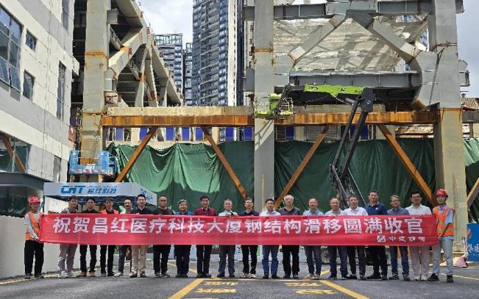 8月10日,由中國啟源所屬深圳機械院參與設計的昌紅醫(yī)療科技大廈項目1#加建大跨度鋼結(jié)構(gòu)廠房最后2榀桁架滑移就位,標志著項目關(guān)鍵性工程節(jié)點——大跨度鋼結(jié)構(gòu)滑移施工圓滿完成。