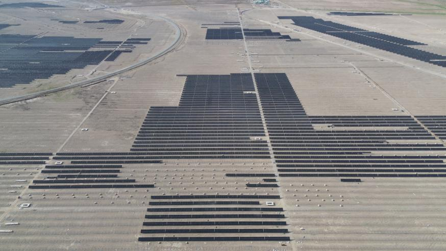 中節(jié)能第十二師產(chǎn)業(yè)園區(qū)低碳轉(zhuǎn)型50萬千瓦光伏項(xiàng)目正在進(jìn)行光伏支架和組件安裝工作