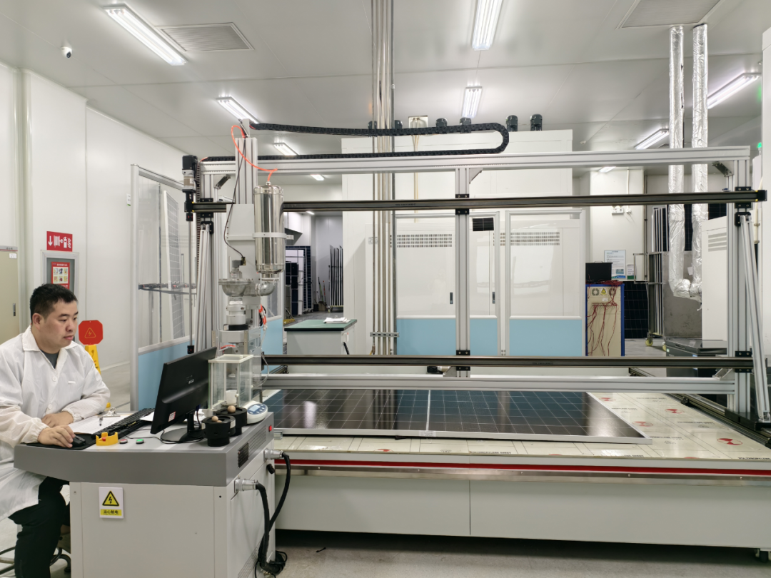 太陽能鎮(zhèn)江公司檢測(cè)人員正在進(jìn)行組件量產(chǎn)產(chǎn)品冰雹測(cè)試