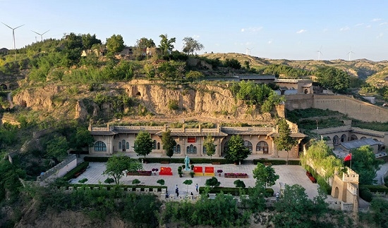 游人在陜西省榆林市米脂縣楊家溝革命舊址參觀(9月10日攝,無(wú)人機(jī)照片)。新華社記者 陶明 攝