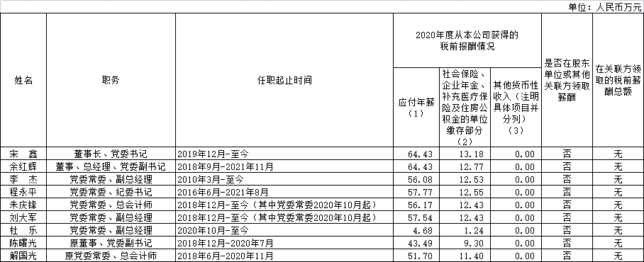 中國節(jié)能環(huán)保集團有限公司企業(yè)負責人2020年度薪酬情況